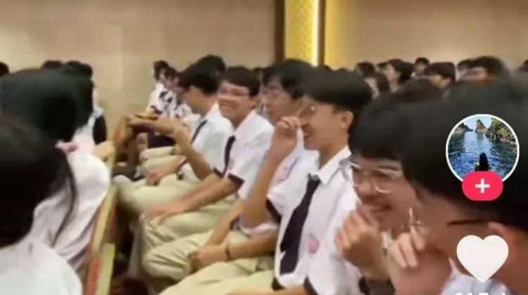 “Siapa tuh?” ujar perekam video sambil mengarahkan kamera ke para siswa.