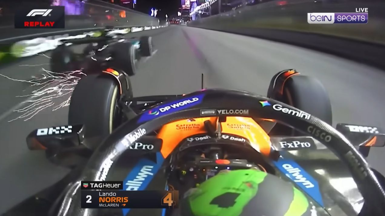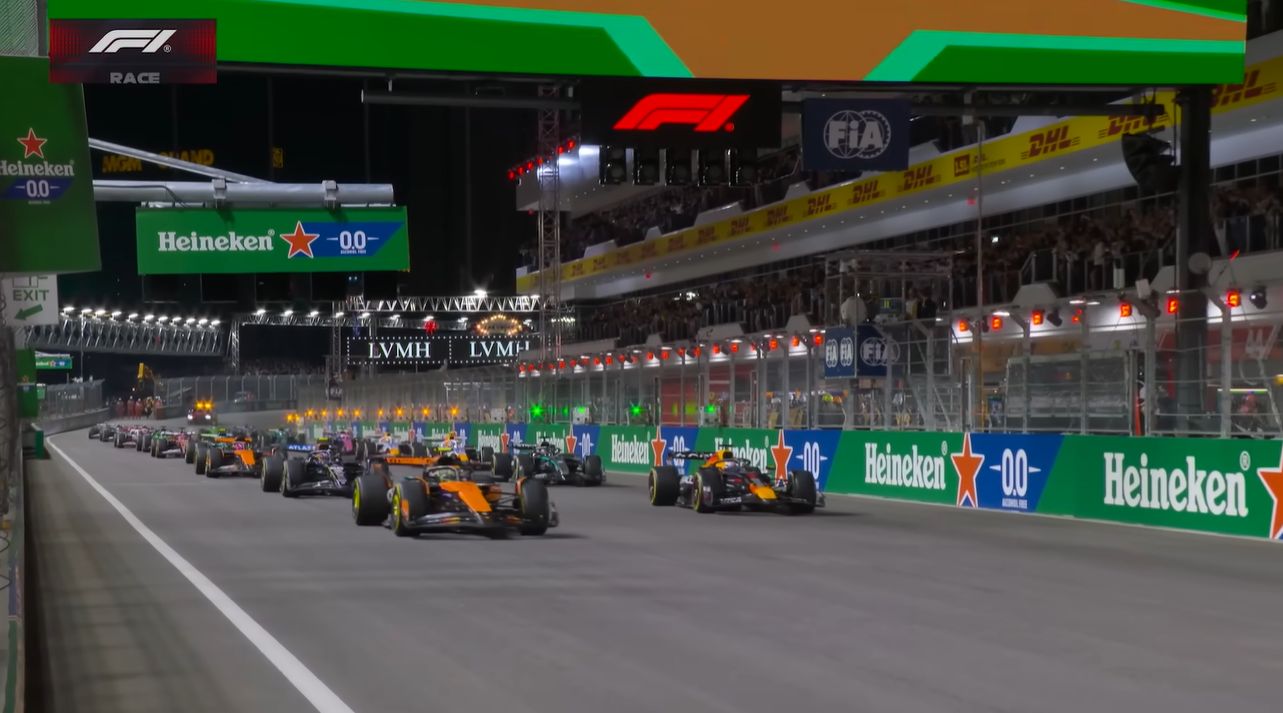 Pada saat start Lando Norris melakukan kesalahan yaitu dia melakukan pertahanan posisi dari Max Verstappen. Dimana Lando Norris, yang memulai balapan dari Pole Position (P1), berupaya keras untuk mempertahankan posisinya dari Max Verstappen (P2) di sisi luar disaat lintasan lurus. Lando Norris mencoba melakukan manuver defensif agresif dengan memotong ke arah dalam sirkuit lurus utama. Namun, Lando Norris melakukan pengereman terlalu lambat dan kehilangan racing line ideal. Mobil McLaren MCL39 miliknya melebar (wide) secara signifikan di pintu masuk Tikungan 1 yang tajam, dan membuatnya sedikit keluar dari lintasan (track limits).