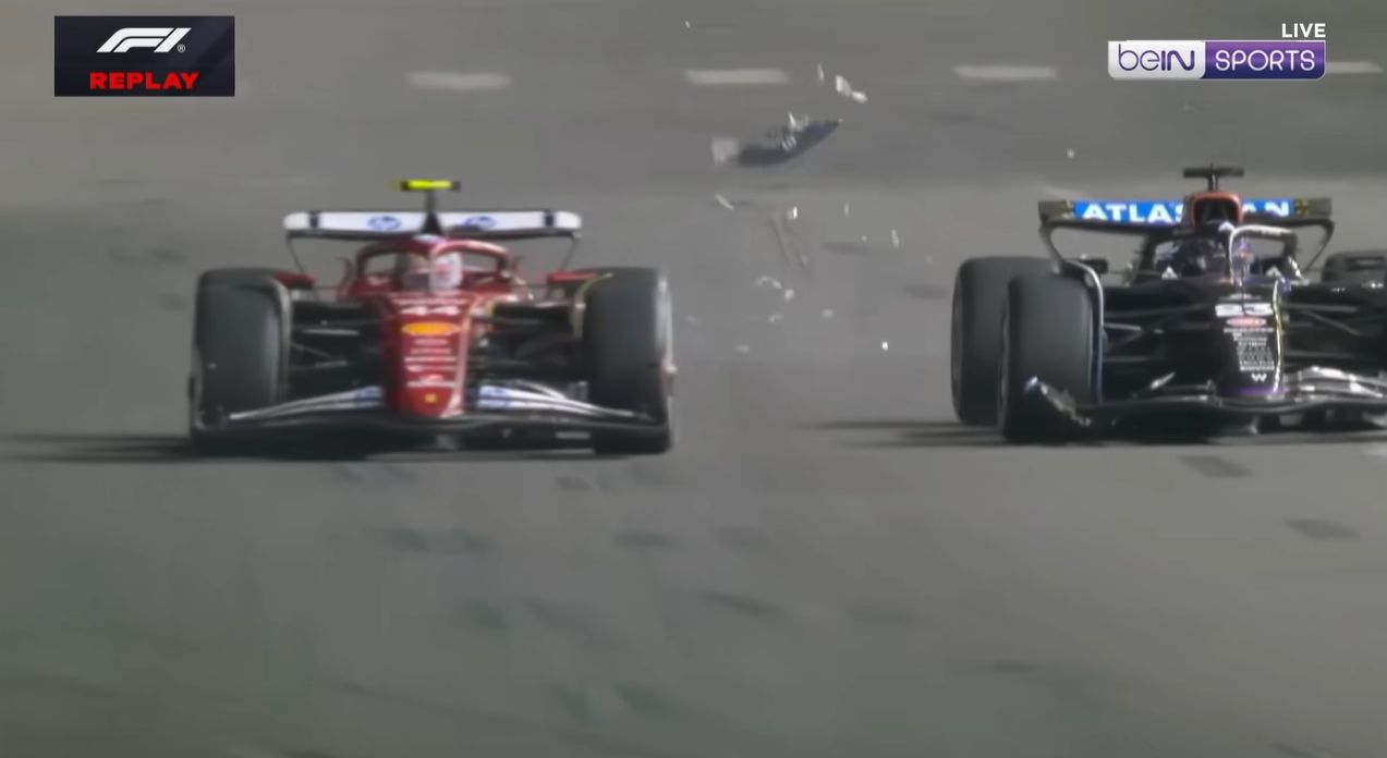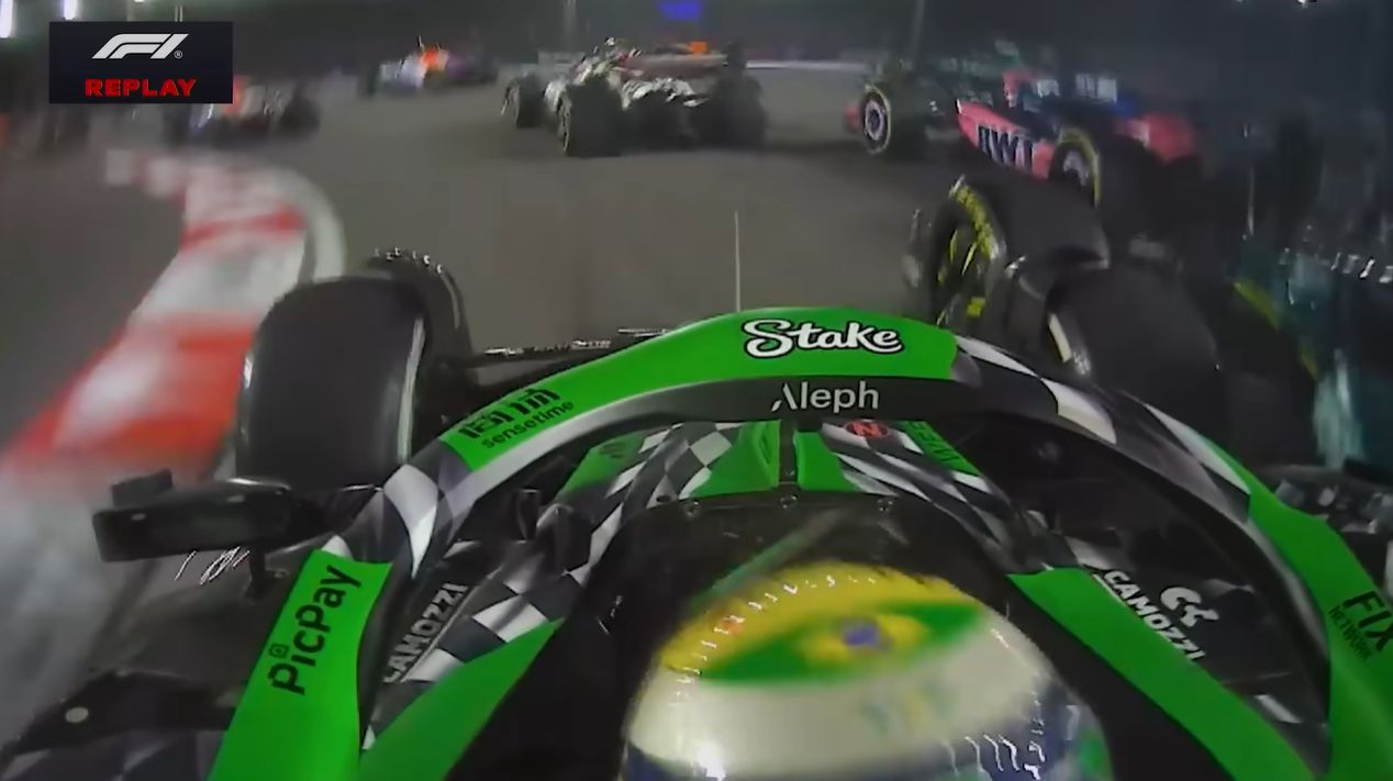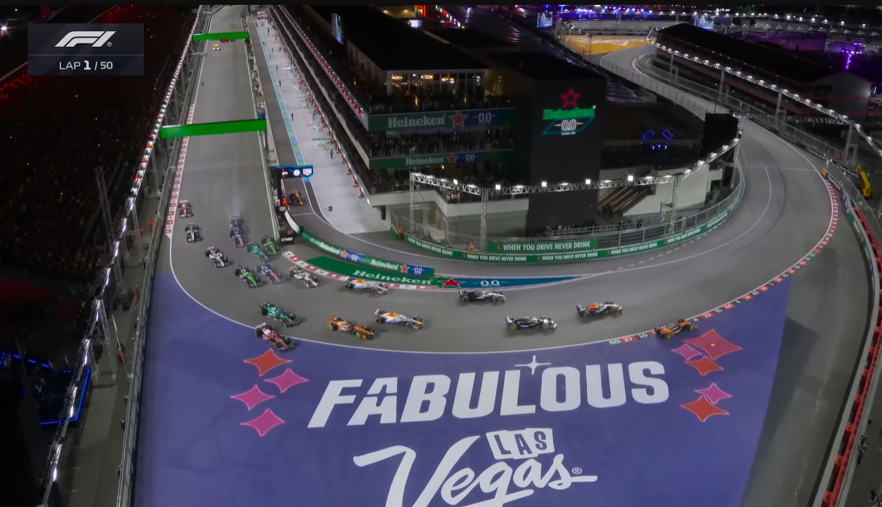 Gabriel Bortoleto melakukan pengereman yang terlalu agresif di tengah kerumunan mobil yang padat. Ia kehilangan titik pengereman ideal, menyebabkan ban depannya terkunci (lock-up). Mobilnya meluncur tak terkendali dan menghantam keras sisi samping mobil Aston Martin milik Lance Stroll. Benturan tersebut begitu fatal hingga menyebabkan suspensi mobil Lance Stroll hancur seketika. Lance Stroll terpaksa DNF (Did Not Finish) di tempat kejadian, menjadi pembalap pertama yang gugur di Las Vegas.