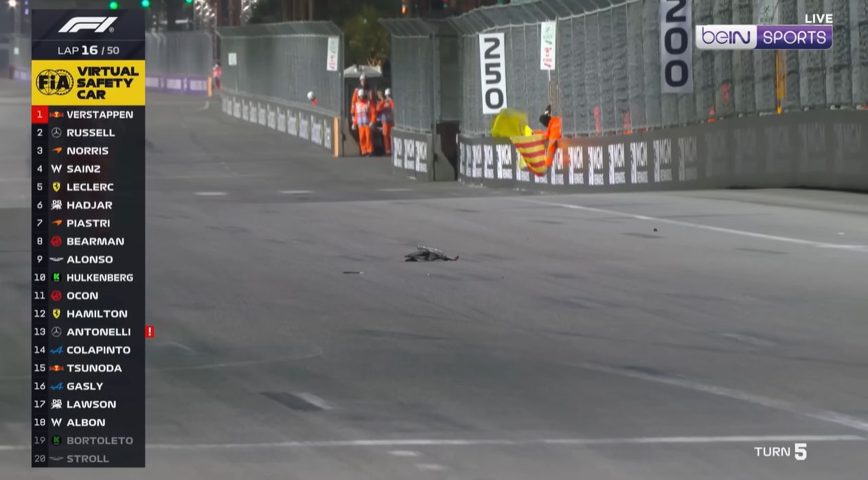 Demi alasan keselamatan, FIA memutuskan mengaktifkan Virtual Safety Car (VSC). Periode VSC ini dimanfaatkan oleh beberapa tim papan tengah untuk melakukan penyesuaian strategi ban. Namun, bagi Lewis Hamilton, insiden ini semakin memperburuk balapannya. Kerusakan aerodinamika pada lantai mobilnya membuatnya kesulitan menjaga kecepatan kompetitif hingga akhir lomba, memaksanya finish di luar zona poin.PENGEJARAN LANDO NORRIS : MEREBUT KEMBALI P2 DARI GEORGE RUSSELL