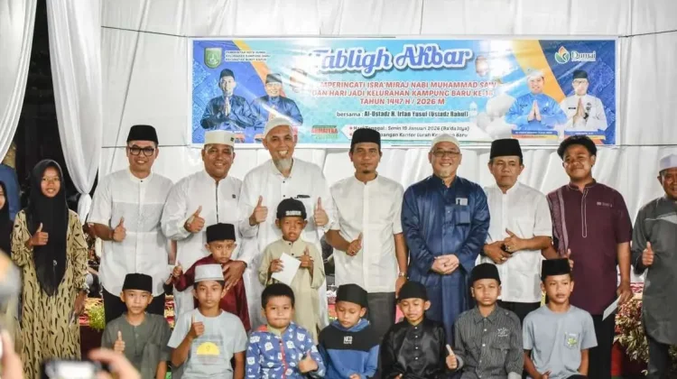 RRI.CO.ID, Dumai - Wali kota (Wako) Dumai, Paisal, didampingi Sekretaris Daerah Kota Dumai Fahmi Rizal, menghadiri acara Peringatan Isra Mi’raj Rasulullah SAW 1447H sekaligus Hari Jadi Kelurahan Kampung Baru bersama masyarakat setempat, Selasa, 20 Januari 2026.