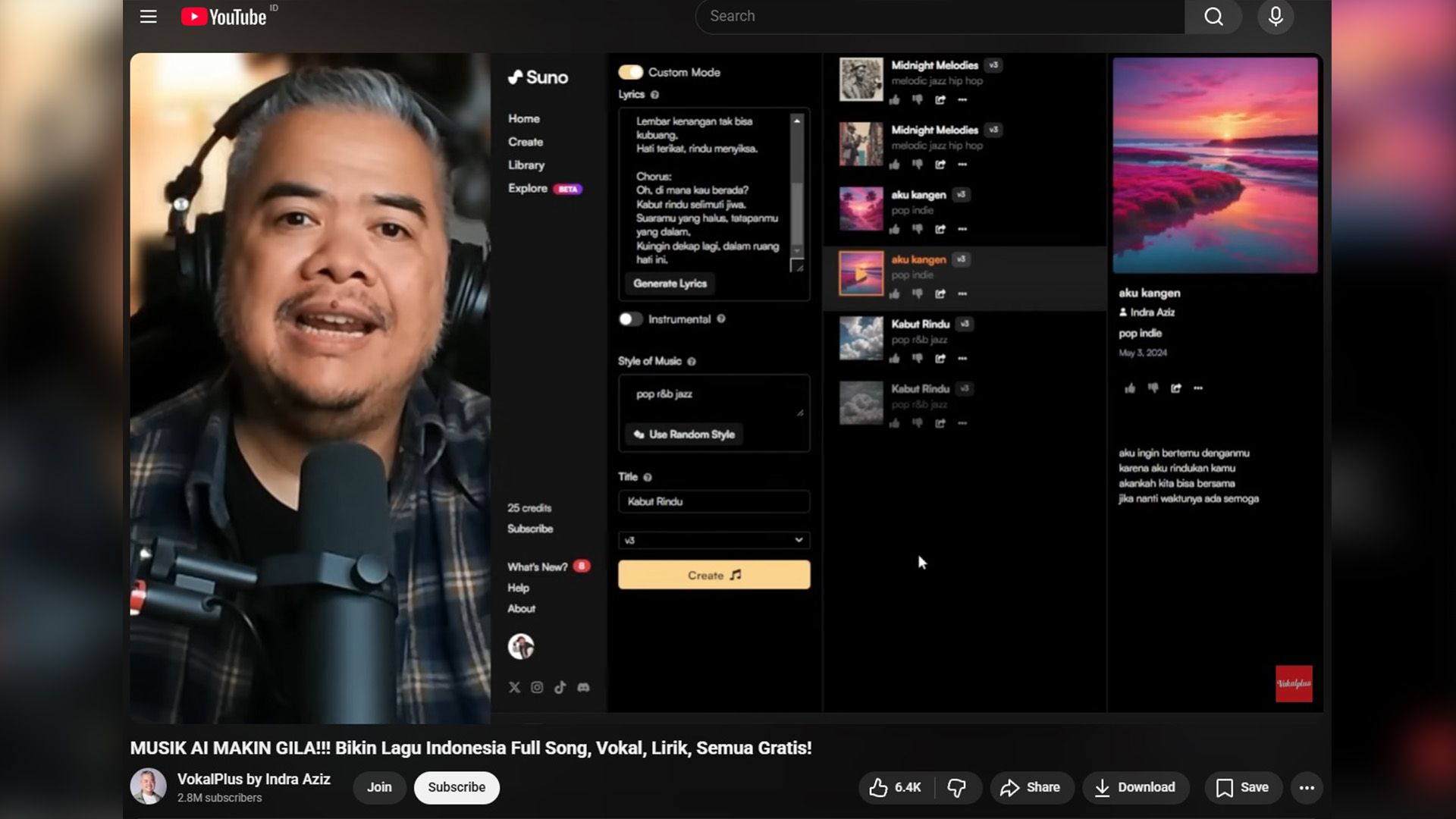 Proses Pembuatan Lagu di Suno. (Foto: Tangkapan Layar Video YouTube VokalPlus by Indra Aziz)