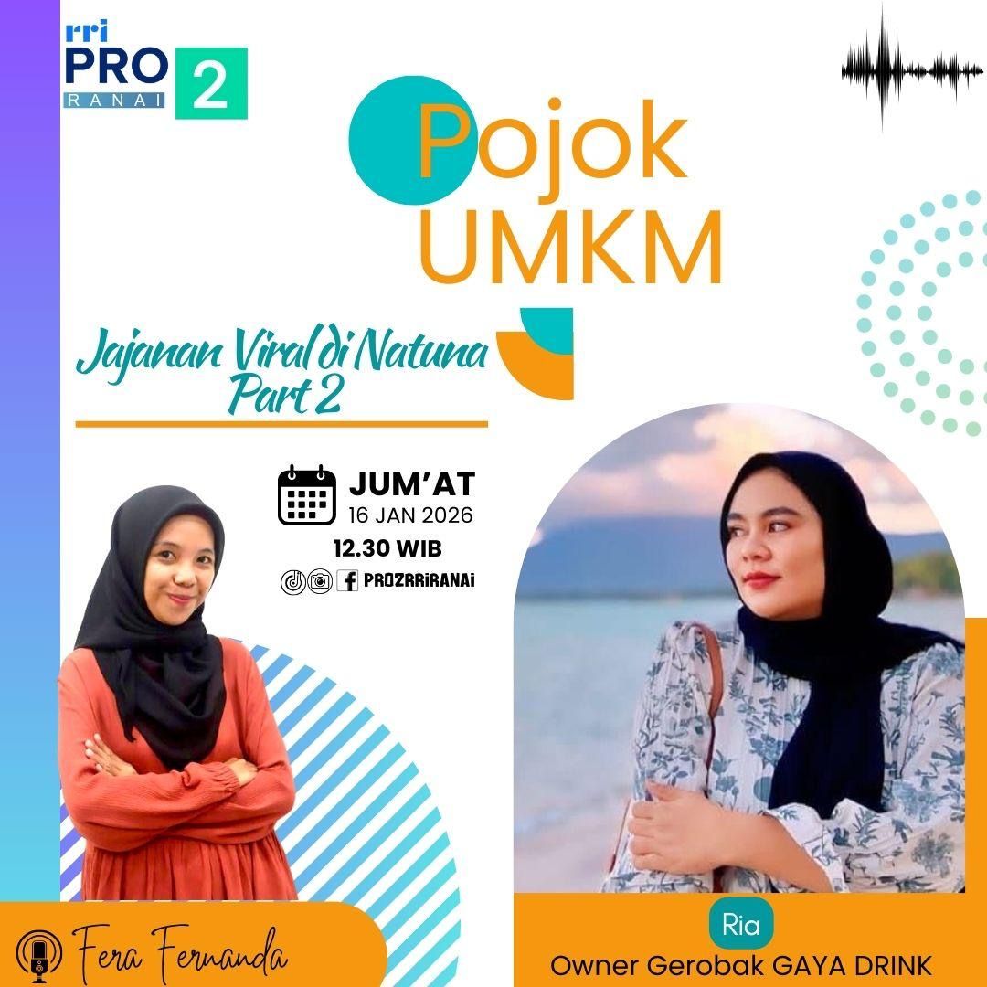Pada acara Obrolan UMKM, Pro2 RRI Ranai menghadirkan Ria, selaku Owner dari Gerobak Gaya Drink yang sedang viral di Ranai.