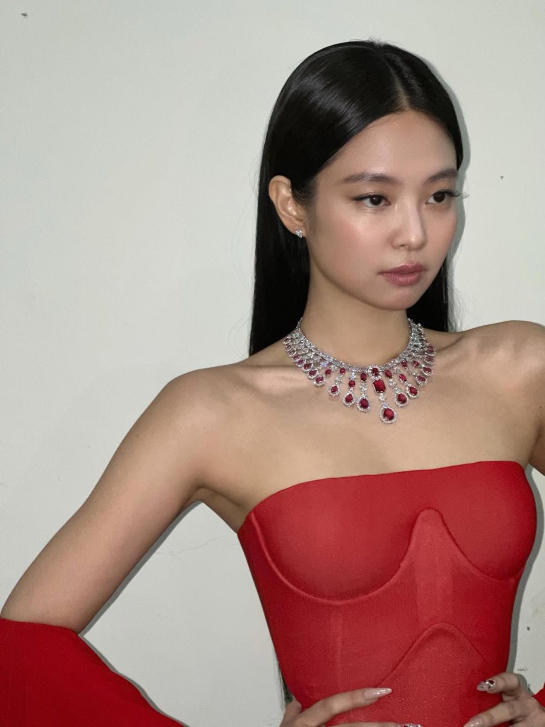 Tak hanya gaun, perhiasan yang dikenakan Jennie juga menjadi perhatian. Mengutip laporan Page Six, Jennie melengkapi penampilannya dengan perhiasan dari Antoine, termasuk kalung khusus yang dihiasi rubi “darah merpati” seberat 60 karat serta 27 karat berlian. Nilai kalung tersebut diperkirakan mencapai 4 juta dolar AS.