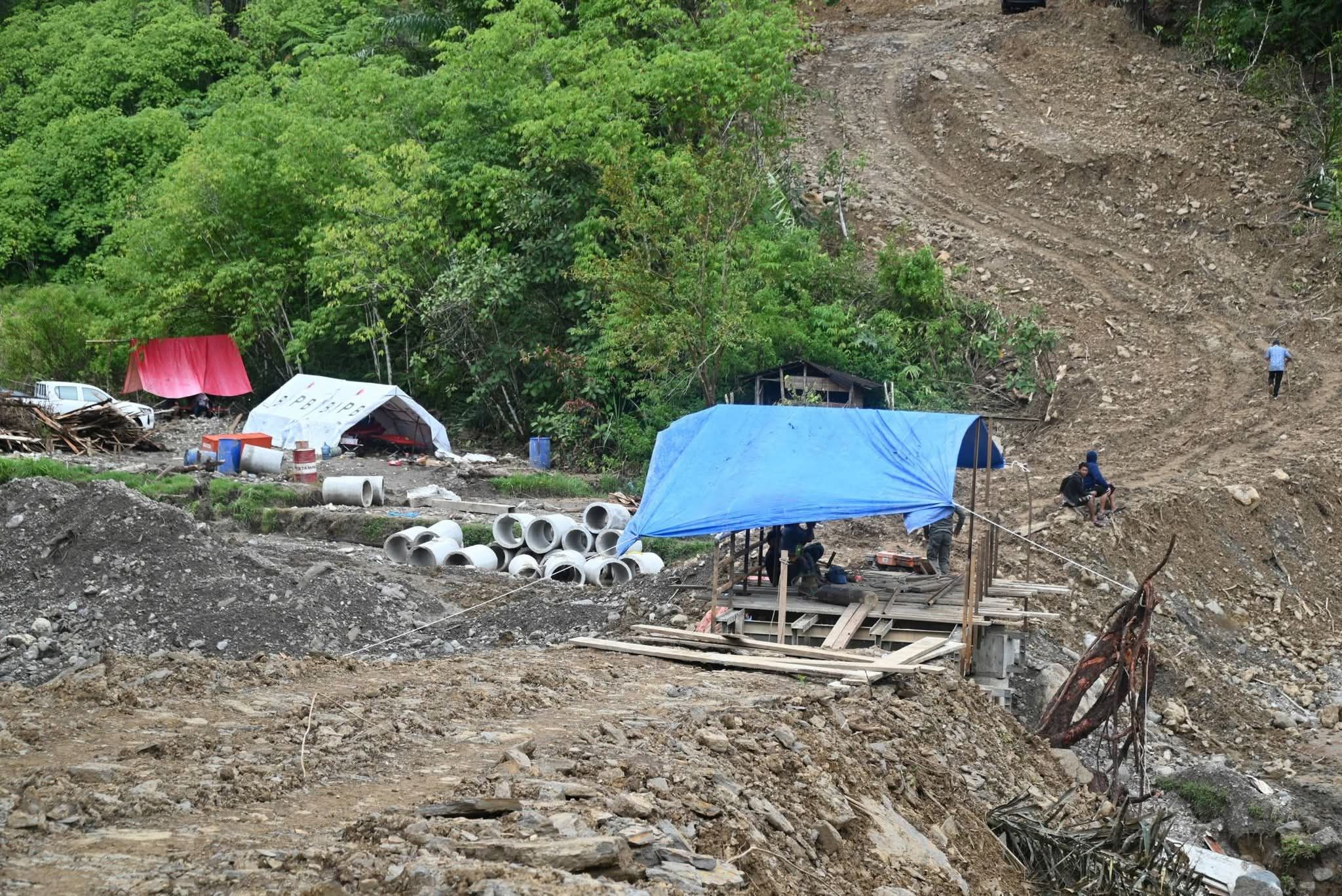 Dalam kunjungannya, Bupati melihat secara langsung kondisi jalan yang mengalami kerusakan serta pembangunan jembatan yang menjadi akses vital bagi aktivitas warga. Bupati menegaskan bahwa percepatan pemulihan infrastruktur menjadi prioritas, agar mobilitas masyarakat kembali normal dan roda perekonomian dapat segera berjalan.