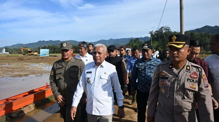 Prosesi peresmian ditandai dengan pengoperasian alat berat serta pemanfaatan teknologi drone untuk penaburan benih, sebagai bagian dari penerapan modernisasi pertanian dalam proses pemulihan lahan terdampak.