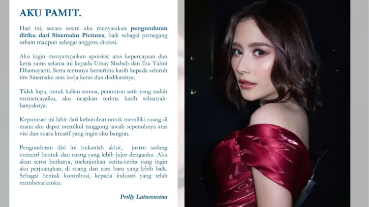 RRI.CO.ID, Singaraja - Aktris sekaligus produser Prilly Latuconsina secara resmi mengumumkan pengunduran dirinya dari rumah produksi Sinemaku Pictures. Pengumuman tersebut disampaikan langsung melalui unggahan di akun Instagram pribadinya, @prillylatuconsina96, pada Minggu, 19 Januari 2026. Dalam pernyataan berjudul “AKU PAMIT.”, Prilly menyatakan tidak lagi terlibat di Sinemaku Pictures, baik sebagai pemegang saham maupun sebagai anggota direksi. Keputusan ini sekaligus menandai berakhirnya keterlibatan struktural Prilly di perusahaan yang selama ini turut membesarkan namanya di industri perfilman Indonesia.